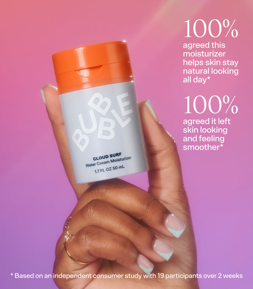 In case you’re wondering, Cloud Surf fits smack dab in the middle of Bubble’s moisturizer line-up, right between creamy Slam Dunk and balancing gel-based Level Up.